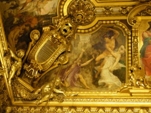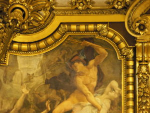 OPERA national de Paris, Palais Garnier, 9ème arrondissement. Grand Foyer. Orphée et Eurydice : il s’agit du moment lors duquel Orphée se retourne pour voir si sa femme, revenue des Enfers, le suit bien, et lors duquel elle s’évanouit à jamais. Mercure est chargé de la ramener aux Enfers.